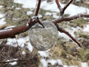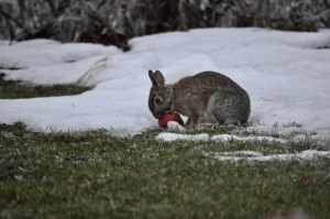 Below is an icy tree in my backyard after the freezing rain and a rabbit eating an apple I tossed out for them. The third photo is courtesy of Andrew Sietsema who has an apple orchard in the nearby Fruit Ridge area in NW Grand Rapids.