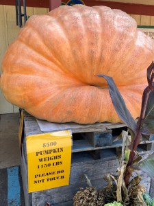 The two photos below are ones I took at Robinette’s a couple of weeks ago. The giant pumpkin this year weighs 1,500 pounds and is for sale for $500. Needless to say I didn’t buy any of the giant pumpkins but it is fun to see them.