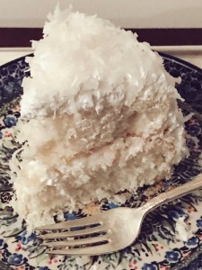 Coconut Cake is a popular dessert in the Southern region of the USA. It is usually frosted with a 7 Minute type fluffy frosting and covered with coconut flakes. A cream cheese frosting or a simple butter cream frosting can be used also. When I lived in the South, this was always a favorite cake that I liked to make for special occasions (no snow required).