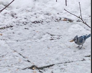 Blue Jays often come by my back yard looking for treats. They are especially fond of peanuts.