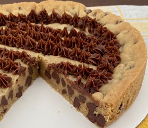 Press the cookie dough evenly into the prepared cake pan. Bake for 20-30 minutes or until the cake is lightly golden brown on top and just set in middle.
